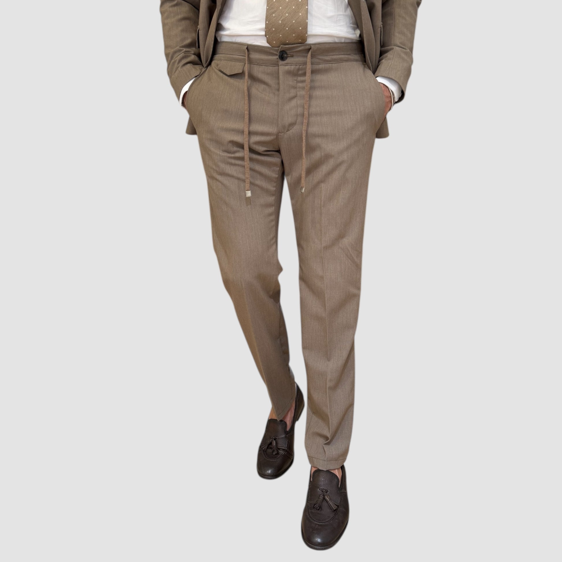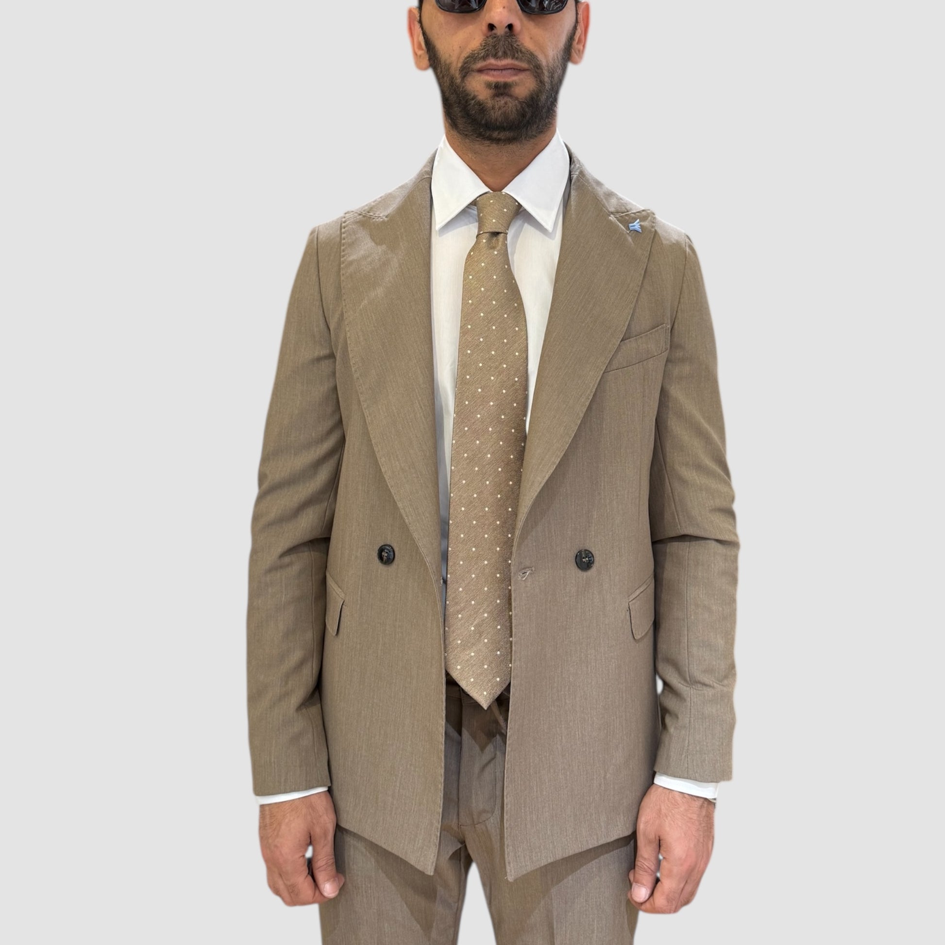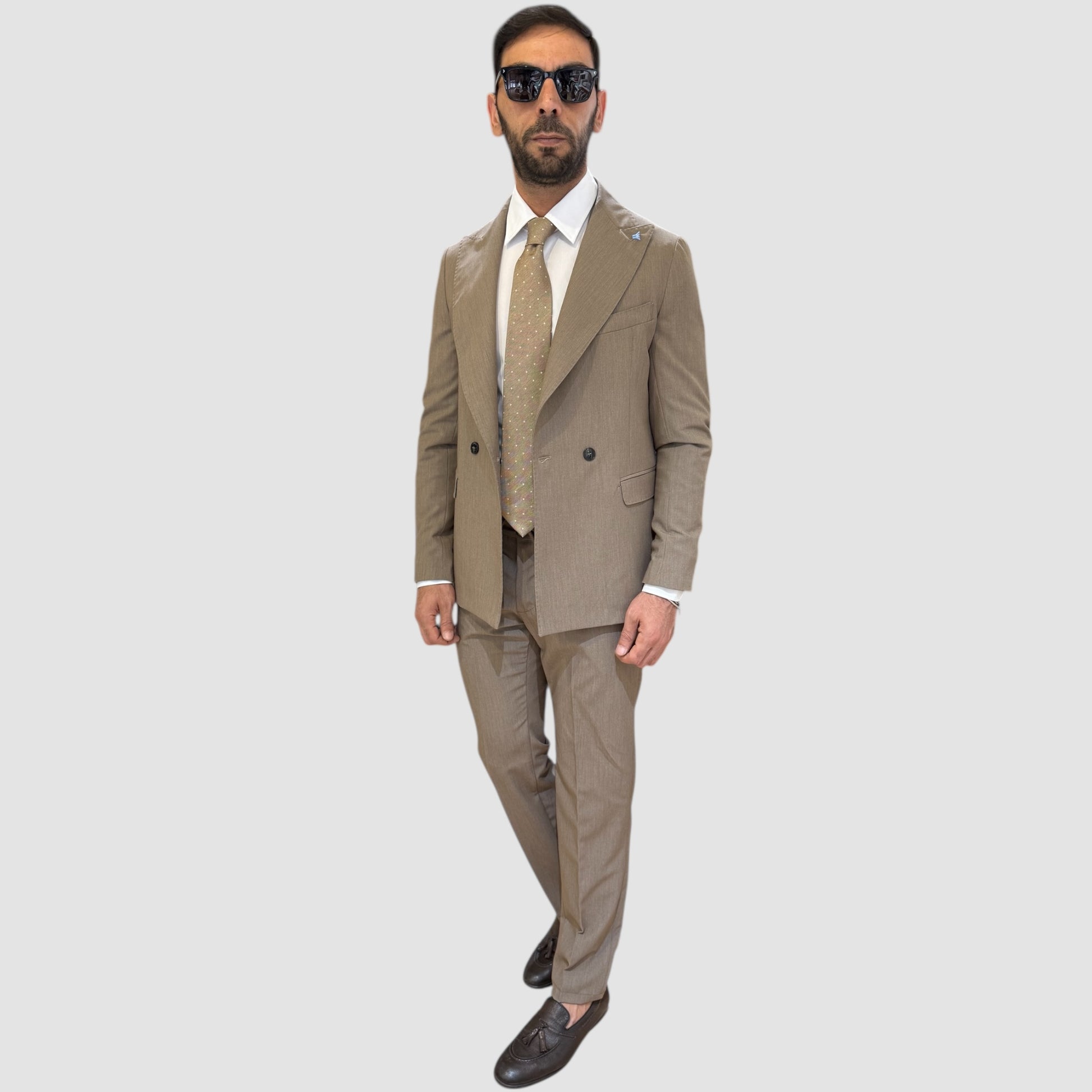 Abito doppiopetto con giacca a due bottoni ,pantalone con coulisse regolabile per offrire una vestibilità impeccabile e un confort assoluto.