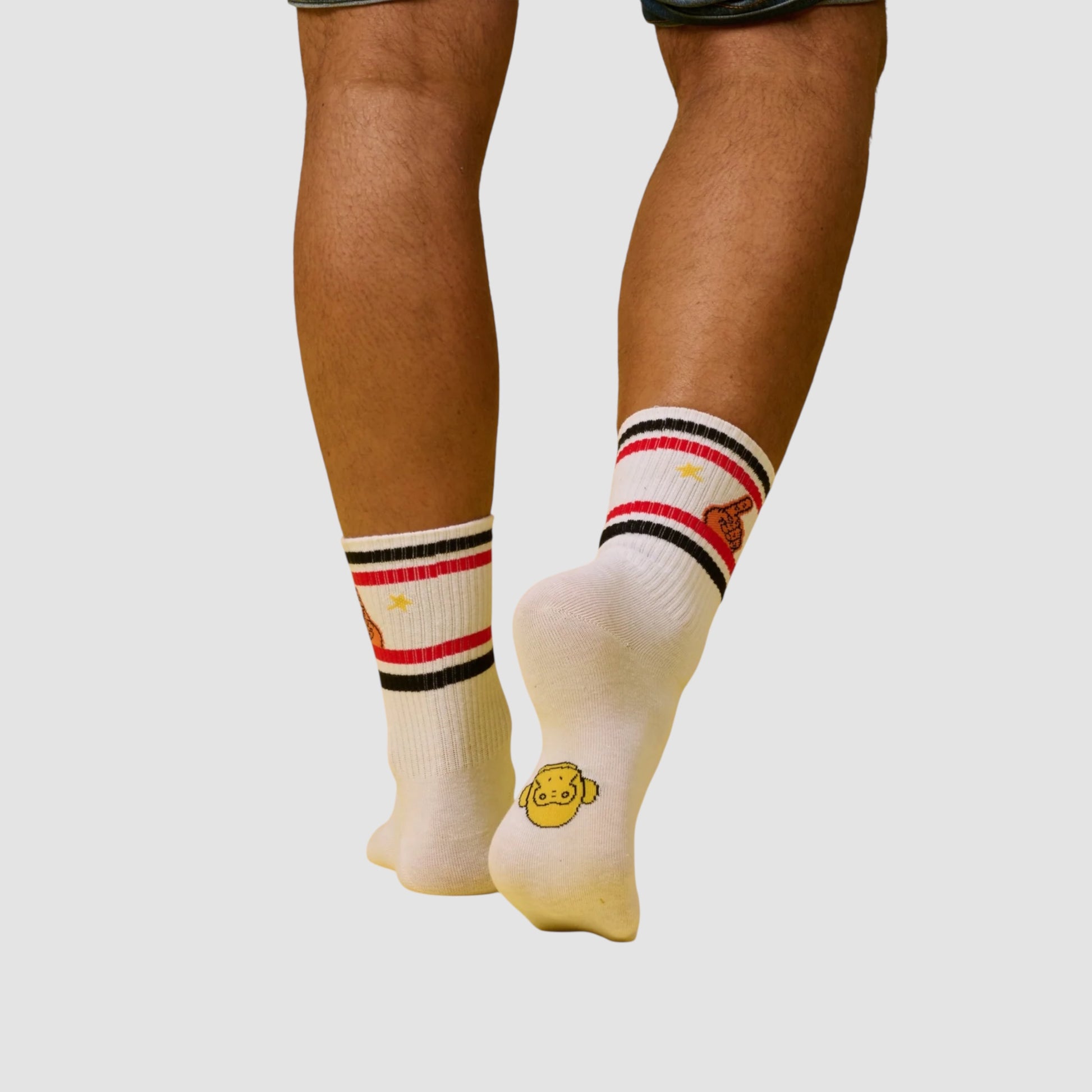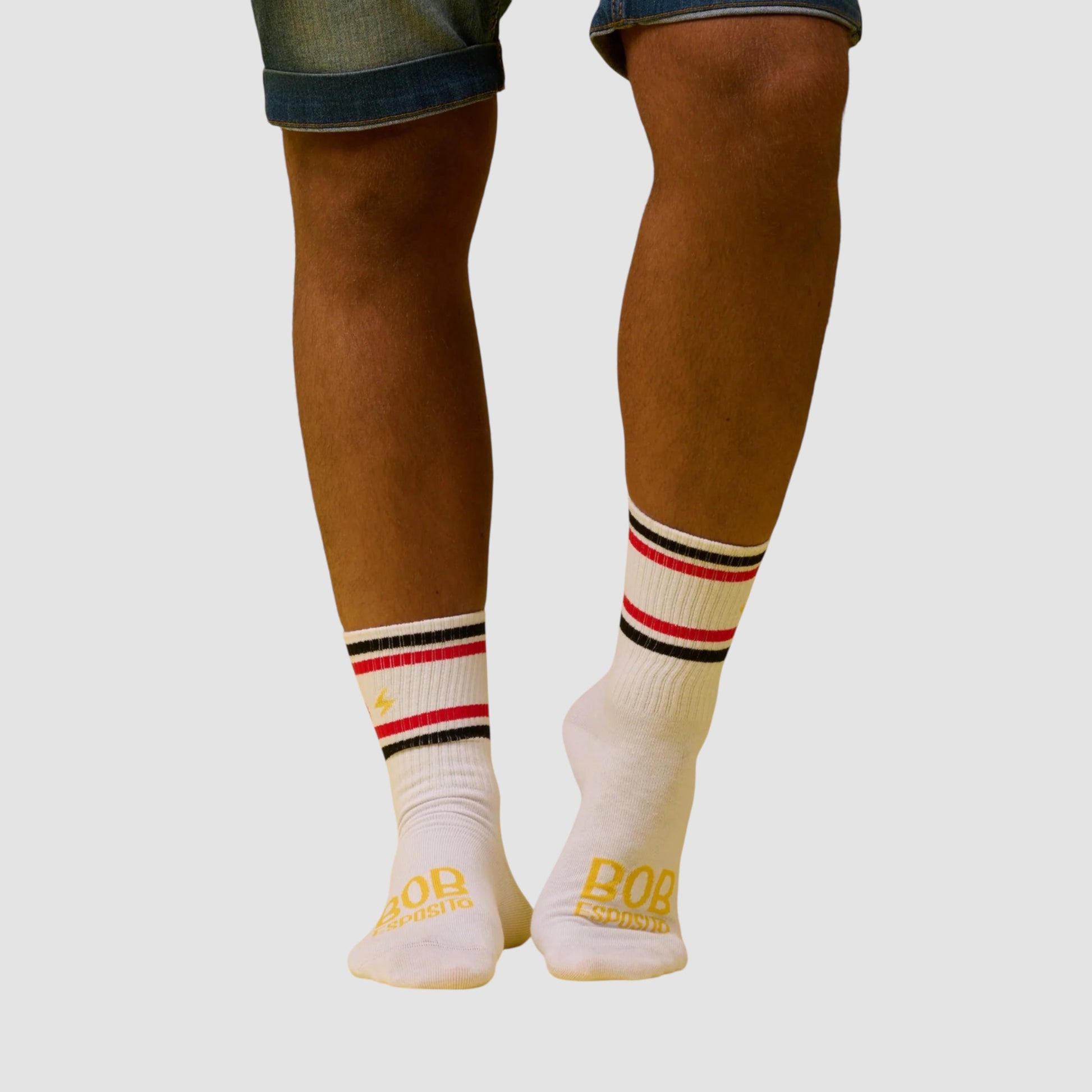 I Calzini Bob Esposito Foam Finger con fondo bianco, fantasia da vero tifoso e spirito da prima fila Ispirati al leggendario foam finger che domina gli stadi americani, questi calzini sono l’accessorio perfetto per chi fa il tifo per tutto: per la vita, per gli amici, per la birra ghiacciata e per il venerdì sera.