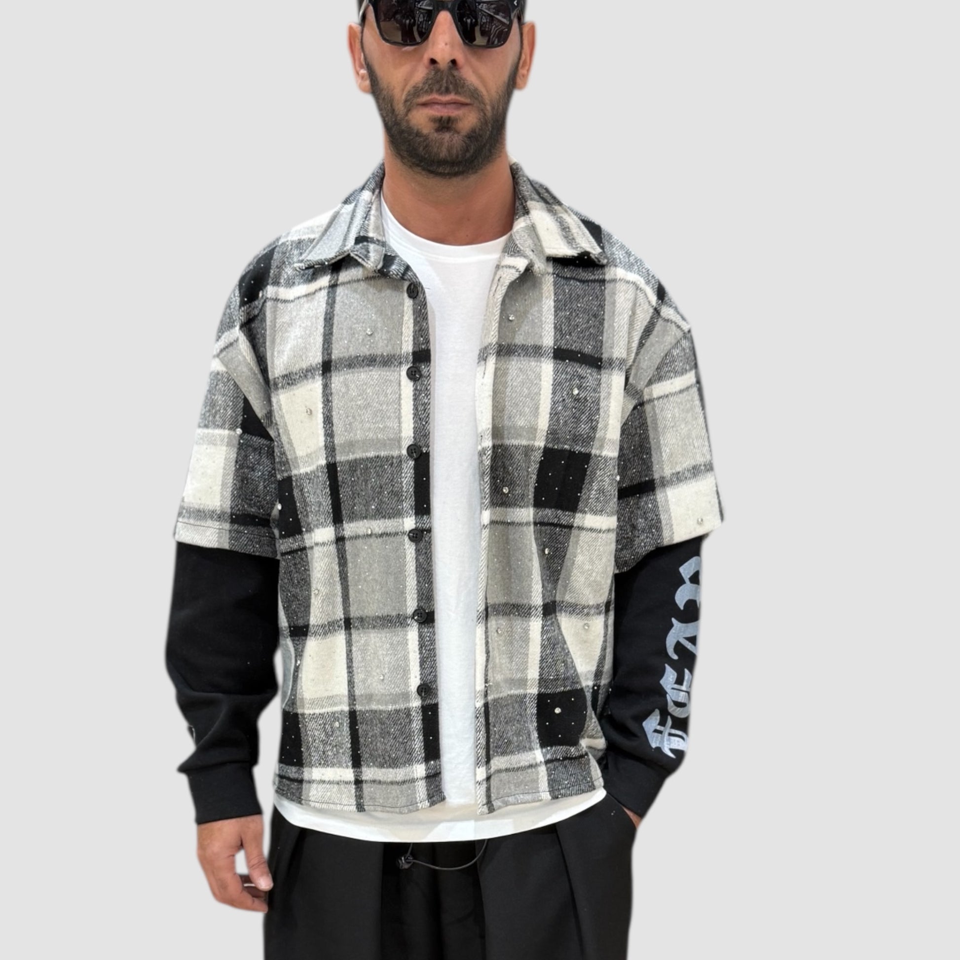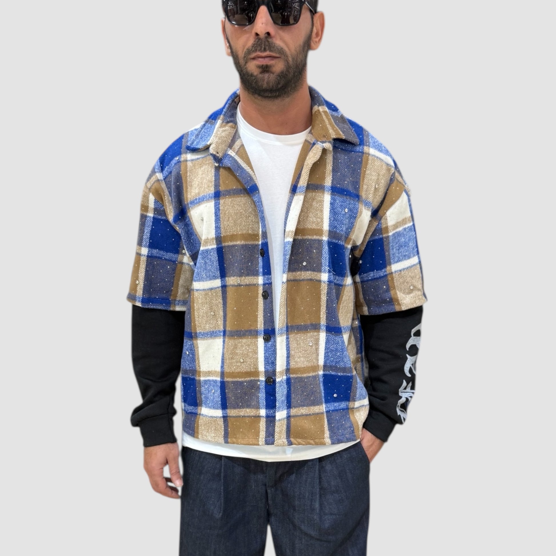 Camicia in flanella con strass e doppia manica in felpa. Disponibile in 2 colori.