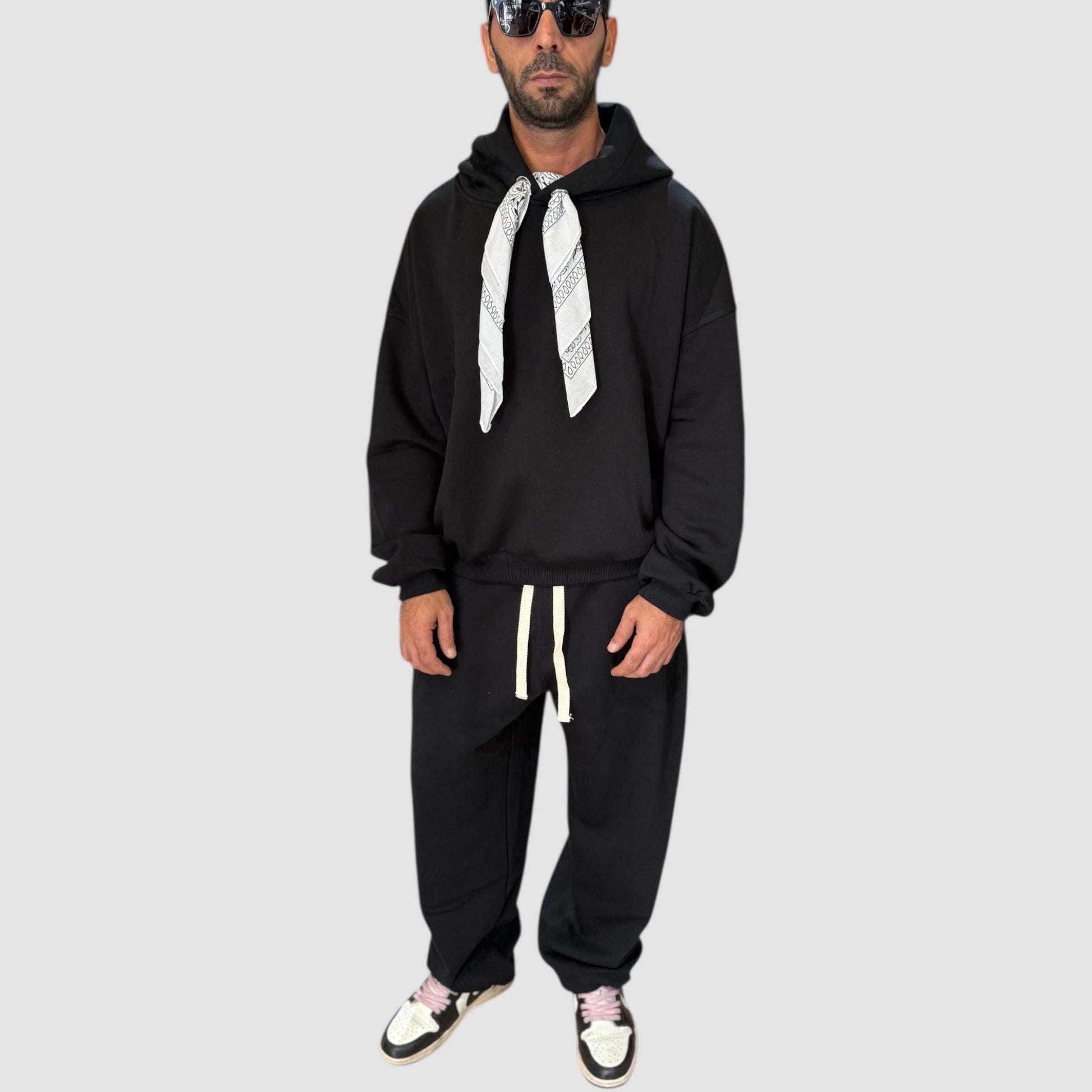 Coordinato di tuta in policotton con pantalone fondo ampio, felpa con cappuccio e bandana dalla vestibilità oversize.