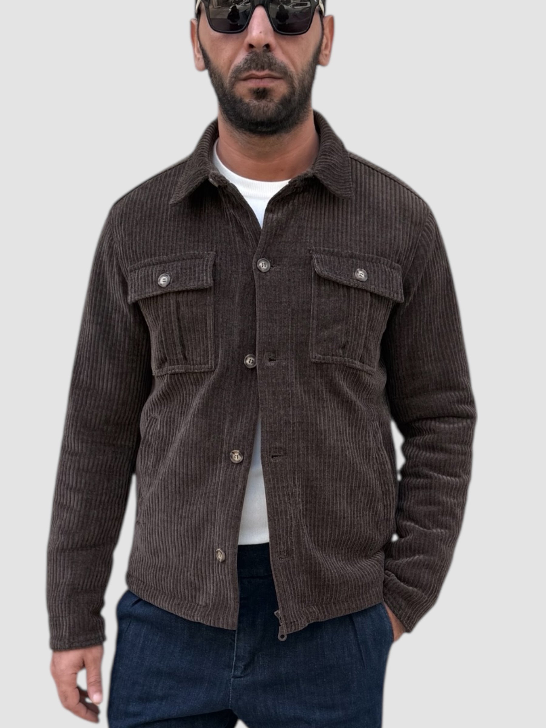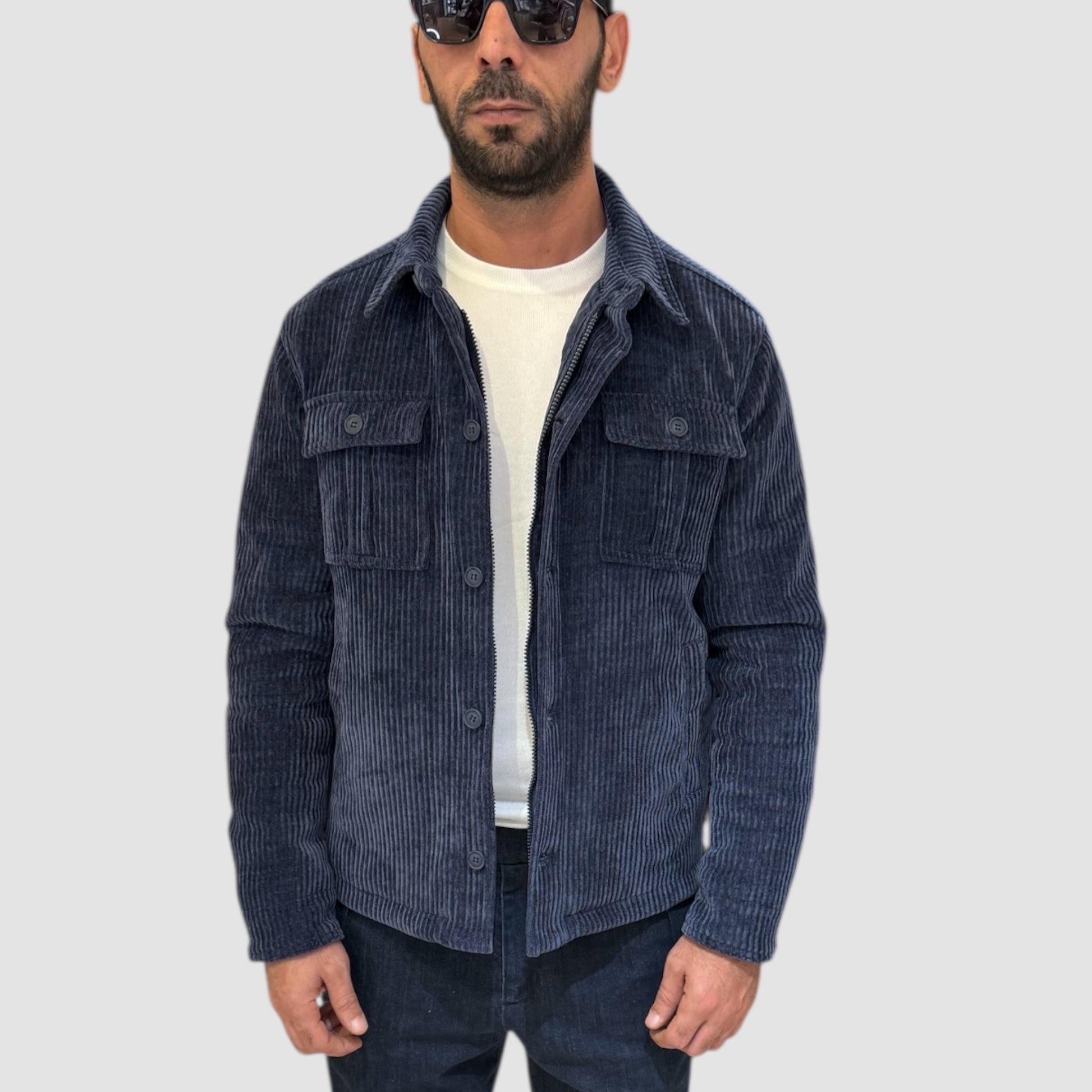 Giubbino in velluto a coste con zip a scomparsa e trapunta all'interno.