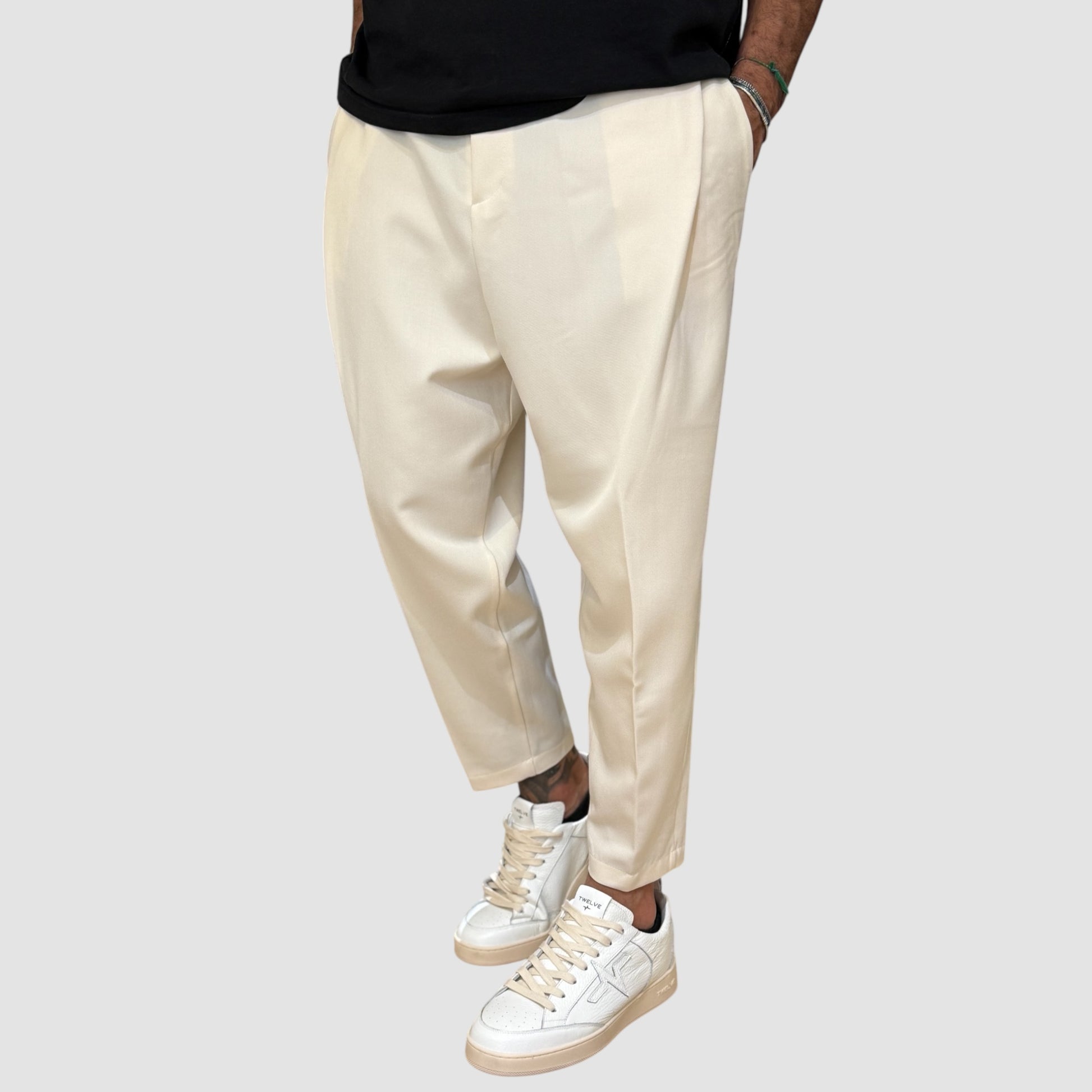 Pantalone dalla vestibilità Japan con bottone e molla sul retro.