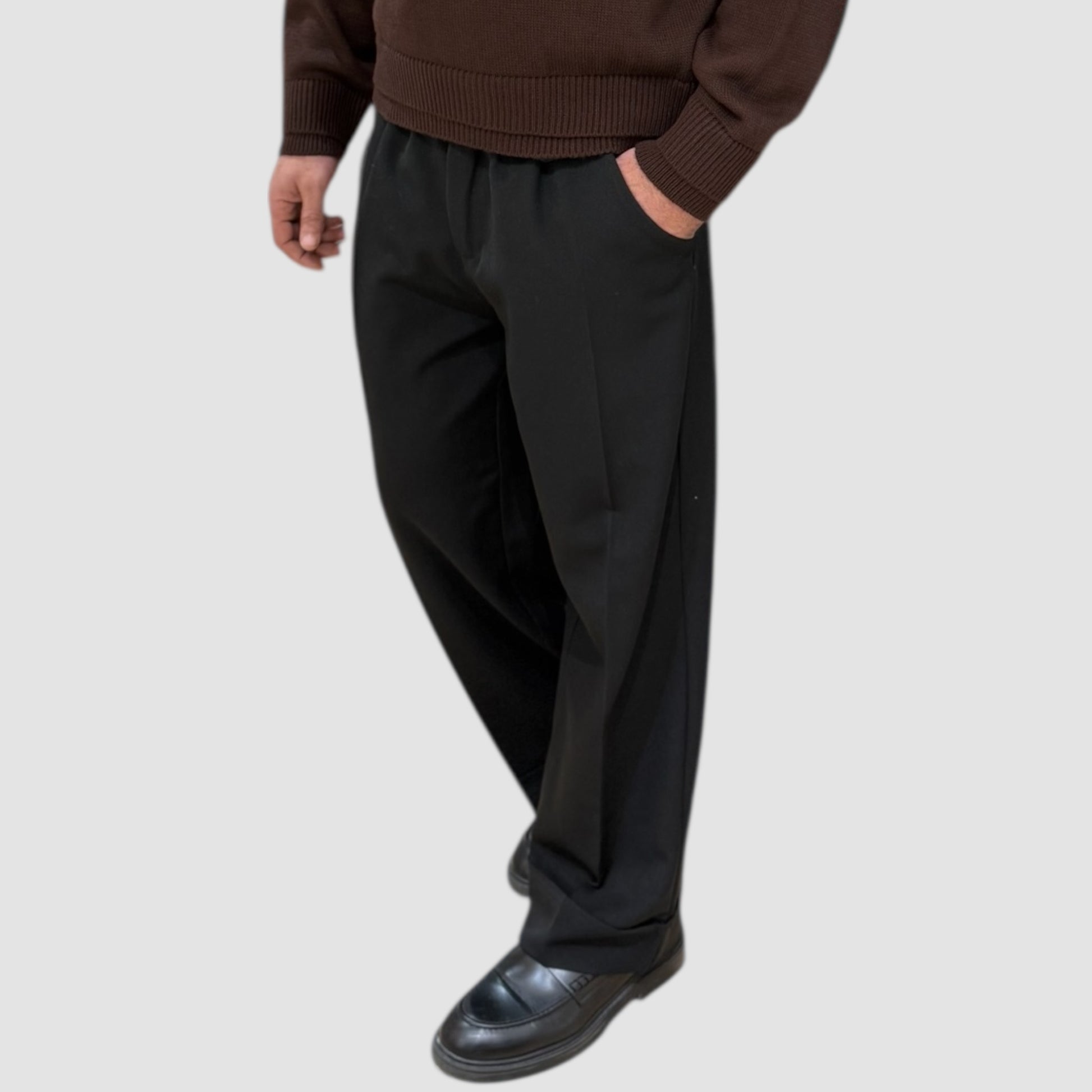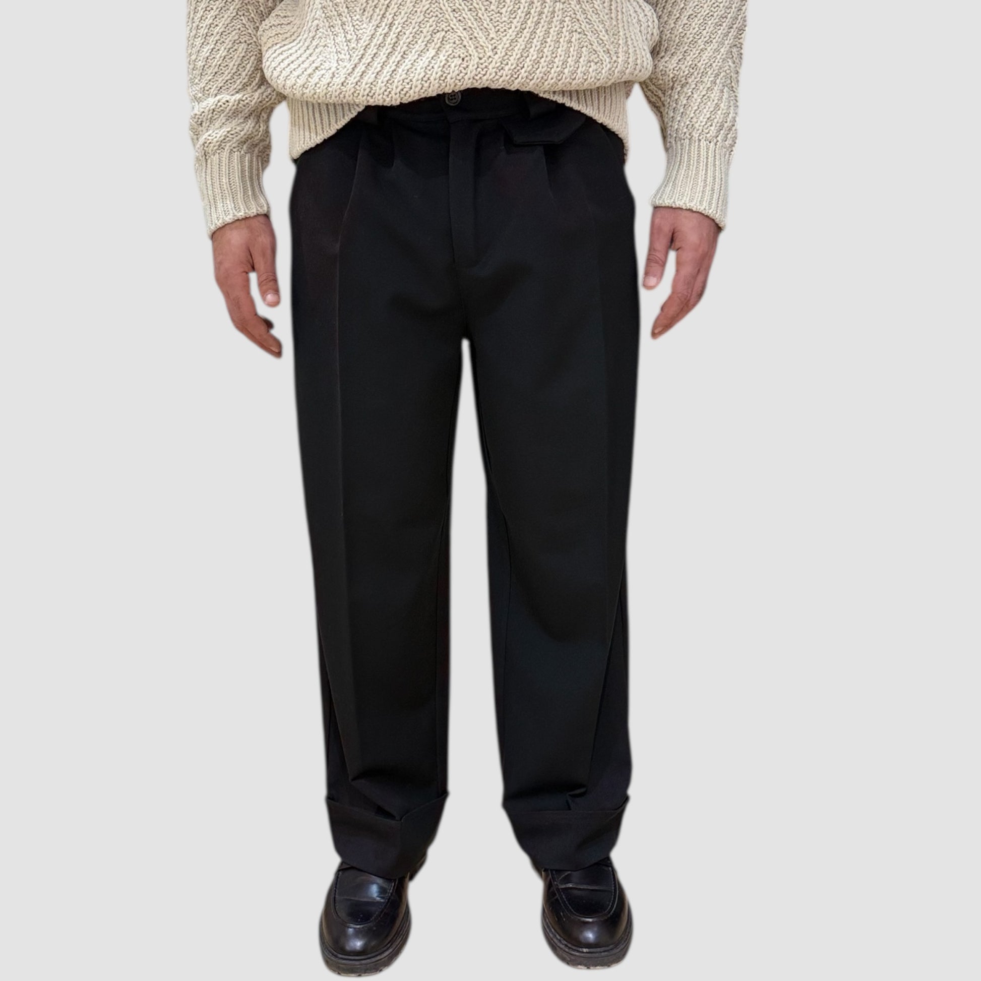 Panta Luis con bottone e molla in vita, vestibilità morbida dal risvolto finale.