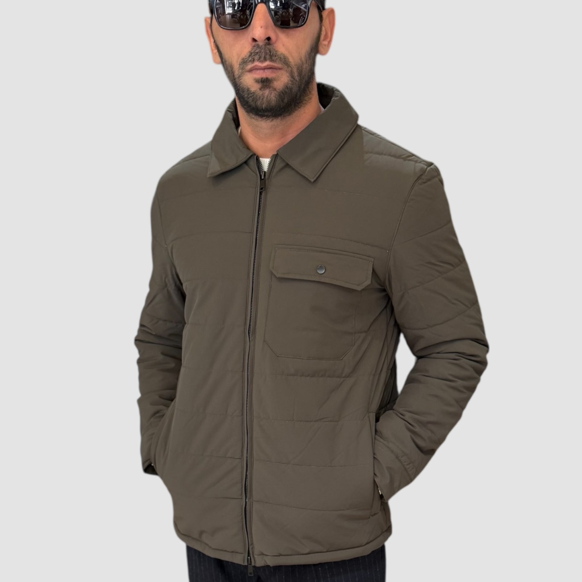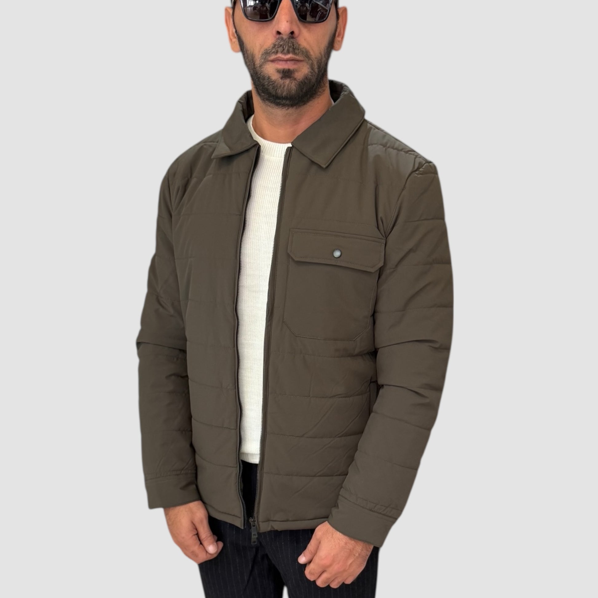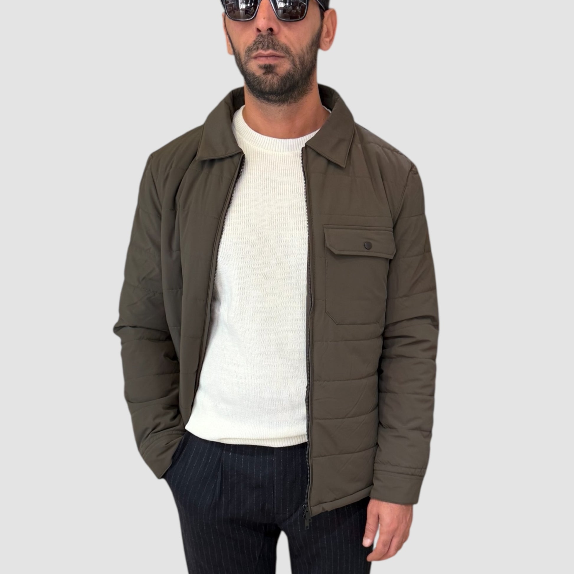 Piumino dal peso medio con cerniera e tasca frontale, vestibilità regolare.